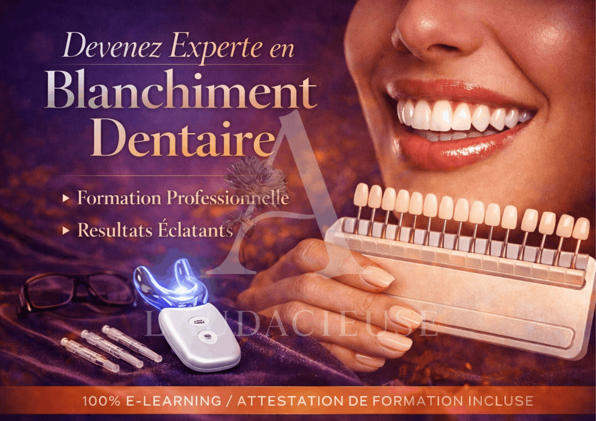 Formez-vous à une technique esthétique de blanchiment dentaire, non invasive et très demandée. Idéal pour diversifier vos prestations et augmenter votre chiffre d’affaires.